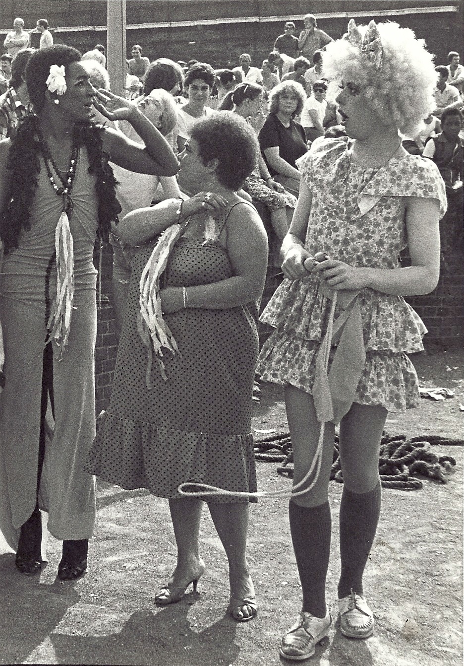 The images from that day show some of the 400-odd people – participants, organisers and spectators – who came along, including drag acts the Disappointer Sisters and David Trollette, as well as landlords of the day Pat and Breda McConnon and their kids.